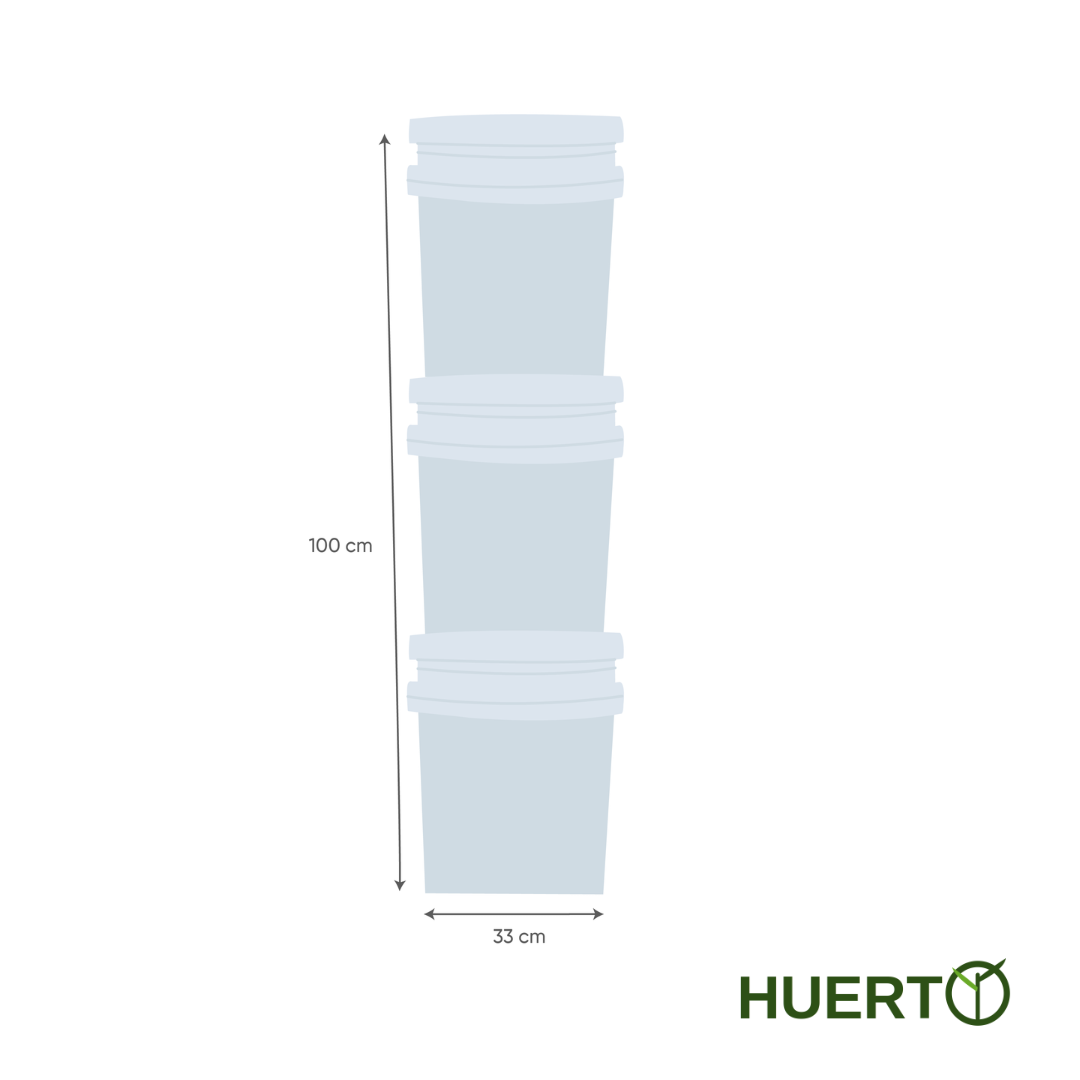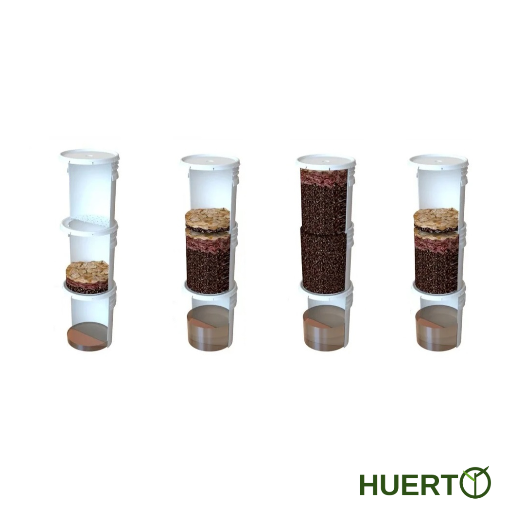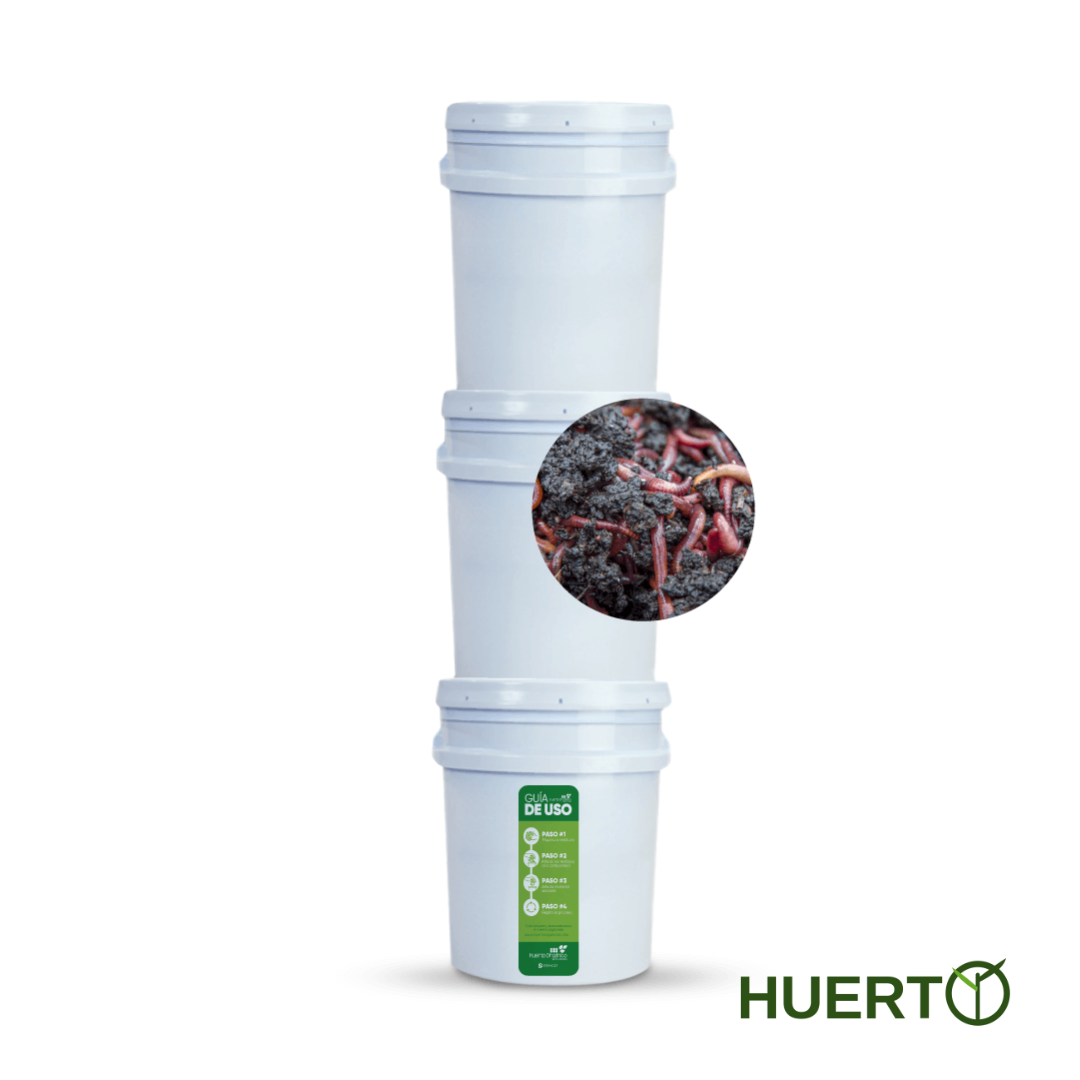 Su diseño modular de 3 cubetas apilables permite un proceso continuo: mientras una cubeta madura, vos seguís alimentando la siguiente con tus residuos de cocina. Las lombrices rojas que incluyen el sistema trabajan de forma natural, silenciosa y eficiente, transformando cáscaras, restos de frutas y verduras, café y material vegetal en dos recursos valiosísimos: humus sólido para mejorar tus suelos y lixiviado líquido para nutrir tus plantas directamente.